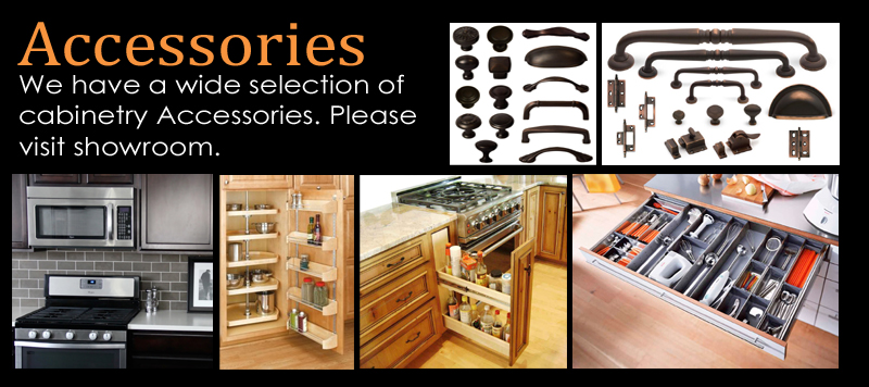 We specialize in custom cabinets, glazed cabinets, stained cabinets, painted cabinets, and more. Our cabinet styles ranges from traditional to contemporary and everything in between. Our gamut collection of accessories for your cabinets and designer appliances for your kitchens will put the finishing touches to all your remodeling needs.